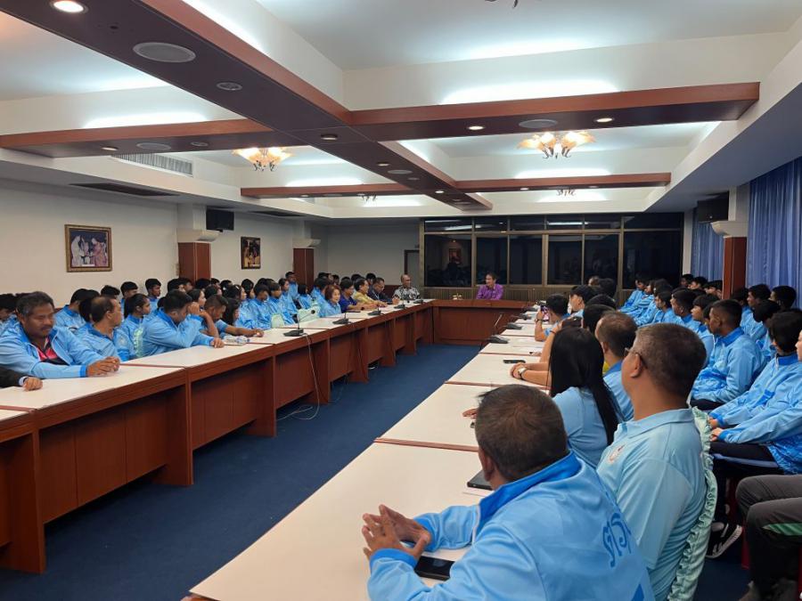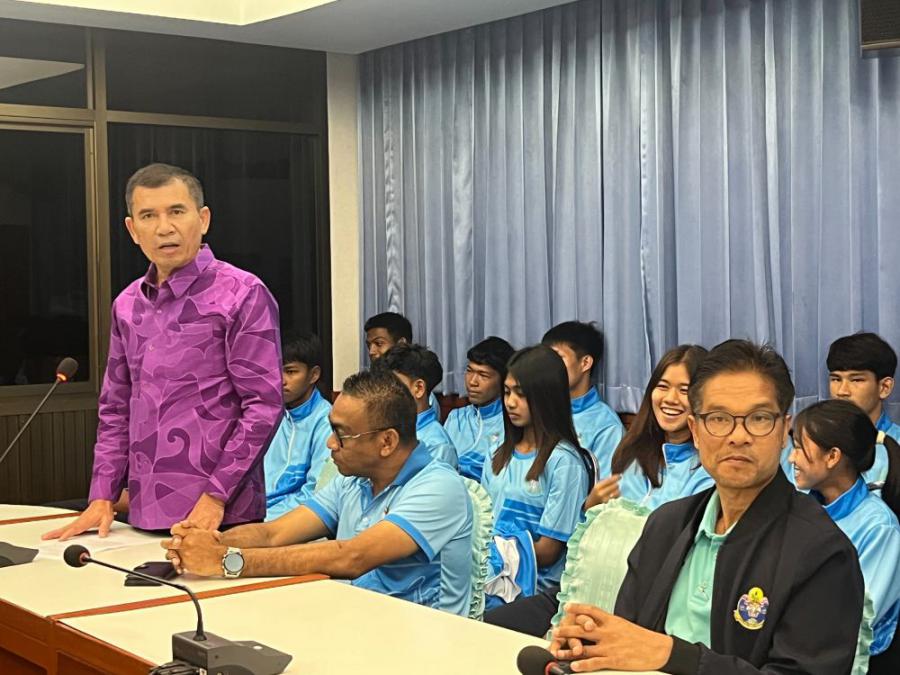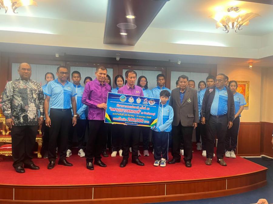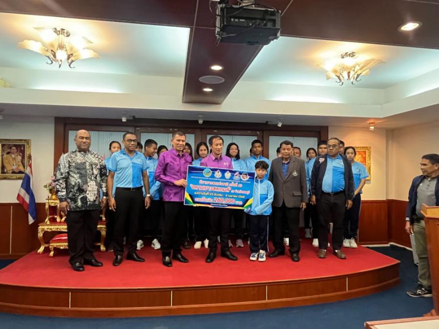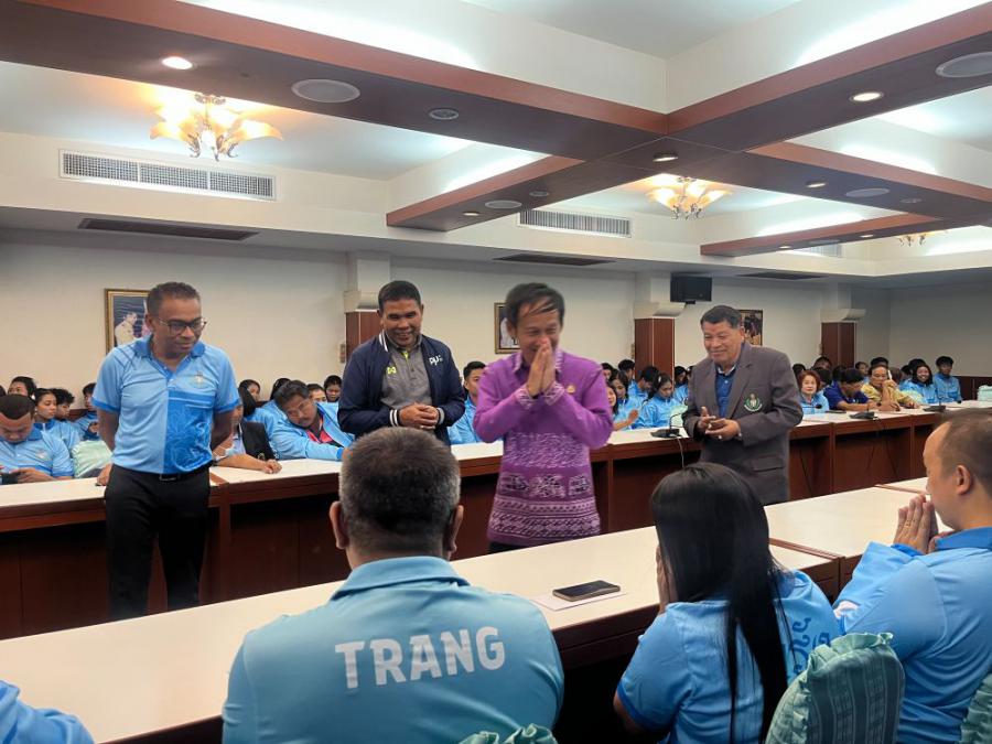 นายทรงกลด สว่างวงศ์ ผู้ว่าราชการจังหวัดตรัง เป็นประธานให้โอวาทและมอบเงินสนับสนุนให้กับนักกีฬาและผู้ฝึกสอน ในการเข้าร่วมการแข่งขันกีฬาเยาวชนแห่งชาติ ครั้งที่ 40 "ฉลามเยาวชลเกมส์" รอบชิงชนะเลิศระดับชาติ ณ จังหวัดชลบุรี ระหว่างวันที่ 23 มีนาคม - 3 เมษายน 2568 โดยมี นายสิทธิศักดิ์ ศักดิ์ศรี ปลัดองค์การบริหารส่วนจังหวัดตรัง จ่าเอกสุวพจน์ สังข์ทองจีน ผู้อำนวยการกองการศึกษา ศาสนาและวัฒนธรรม นายวินัย ทองรัตน์ นายกสมาคมกีฬาแห่งจังหวัดตรัง นายณรงค์ โสภารัตน์ ผู้อำนวยการสำนักงานการกีฬาแห่งประเทศไทย จังหวัดตรัง คณะกรรมการบริหารสมาคมกีฬาแห่งจังหวัดตรัง หัวหน้าส่วนราชการ หัวหน้าหน่วยงาน นักกีฬา ผู้ฝึกสอน ผู้จัดการทีม เข้าร่วมในพิธีกันอย่างพร้อมเพรียง.. S:0