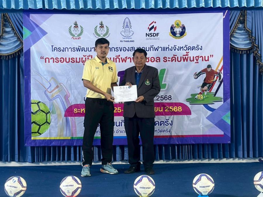 โครงการพัฒนาบุคลากรของสมาคมกีฬาแห่งจังหวัดตรัง ?การอบรมผู้ฝึกสอนกีฬาฟุตซอล ระดับพื้นฐาน? ประจำปีงบประมาณ พ.ศ.2568
