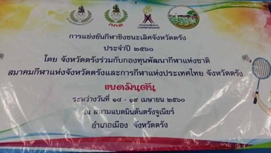 การแข่งขันกีฬาชิงชนะเลิศแห่งจังหวัดตรัง ประจำปี2560 ชนิดกีฬาแบดมินตัน 18-19 เมษายน 2560 S:0